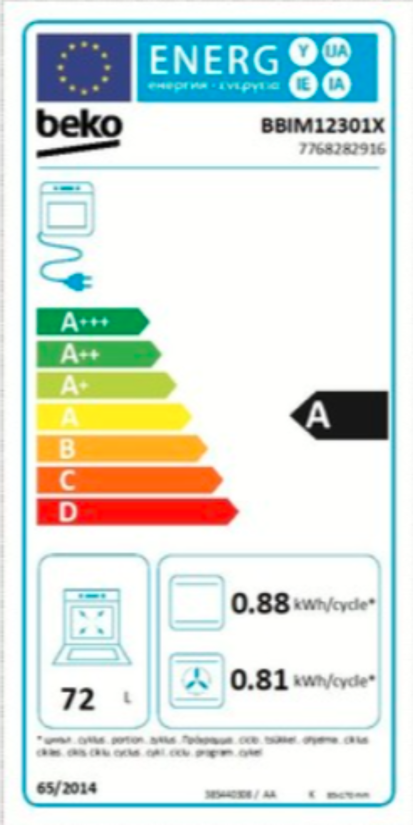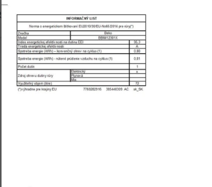 | Objem trouby L | 72 |