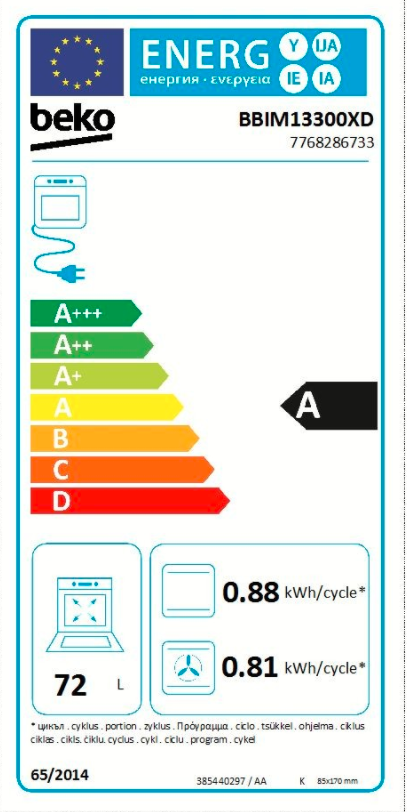 | Objem trouby L | 72 |