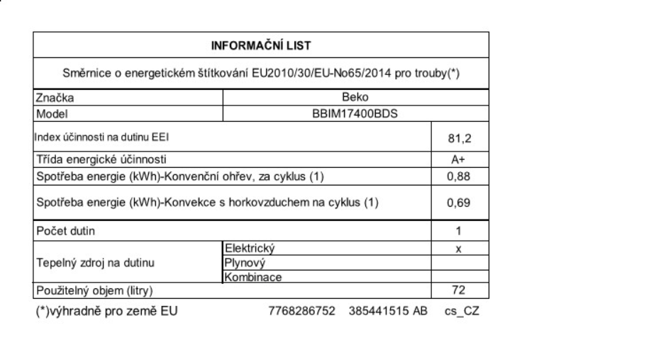 Energetická třída (A+++ - D)        A+