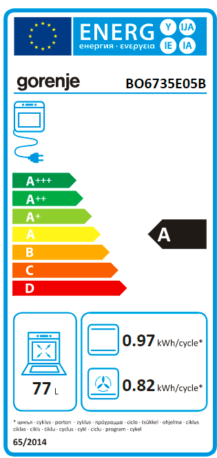 Spotřeba elektrické energie na jeden cyklus v režimu ventilátorové nucené konvekce (2010/30 / ES) 0,82 kWh/cycle