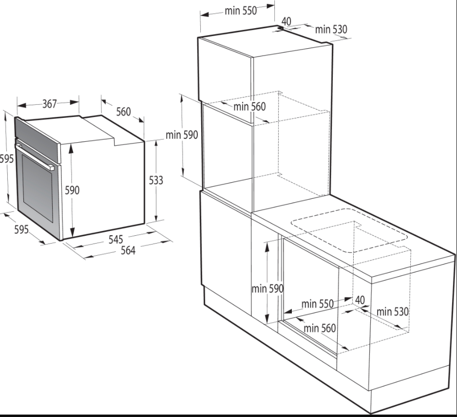 Minimální šířka otvoru pro vestavění (mm) 560 mm
