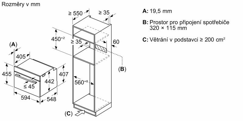 rozměry niky (V x Š x H): 450 mm - 455 mm x 560 mm - 568 mm x 550 mm