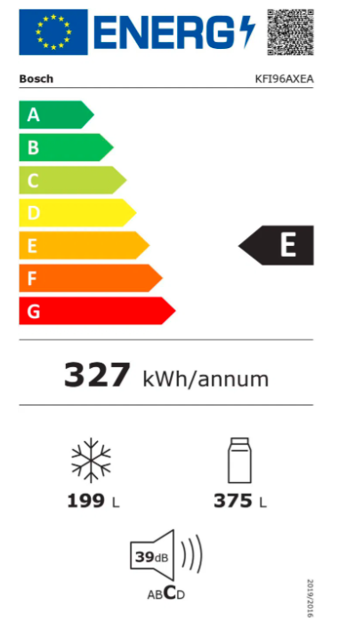Volně stojící americká lednice, Barva: Nerezová, Energetická třída: E, Rozměry (VxŠxH): 1830x905x731 mm, Celkový objem: 574 l, Technologie: NoFrost, Max. hlučnost: 39 dB, Roční spotřeba energie: 327 kWh, Výbava: Dávkovač vody, Nulová zóna, Připojení na vodu, Výrobník ledu