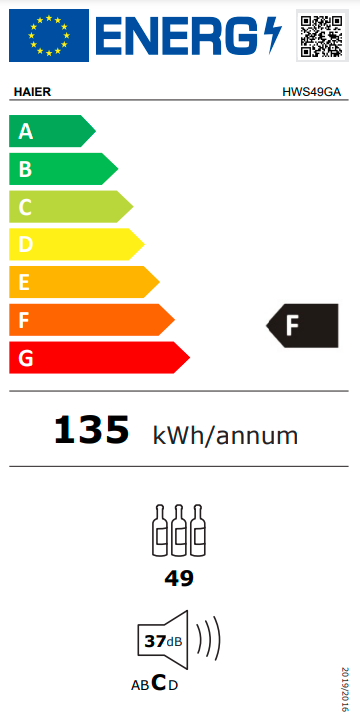 Výběr vinotéky třídy F od společnosti Haier znamená úsporu energie, zvýšení efektivity výkonu a ohleduplnost k životnímu prostředí. Snížení spotřeby energie o 34 % v porovnání třídou G.